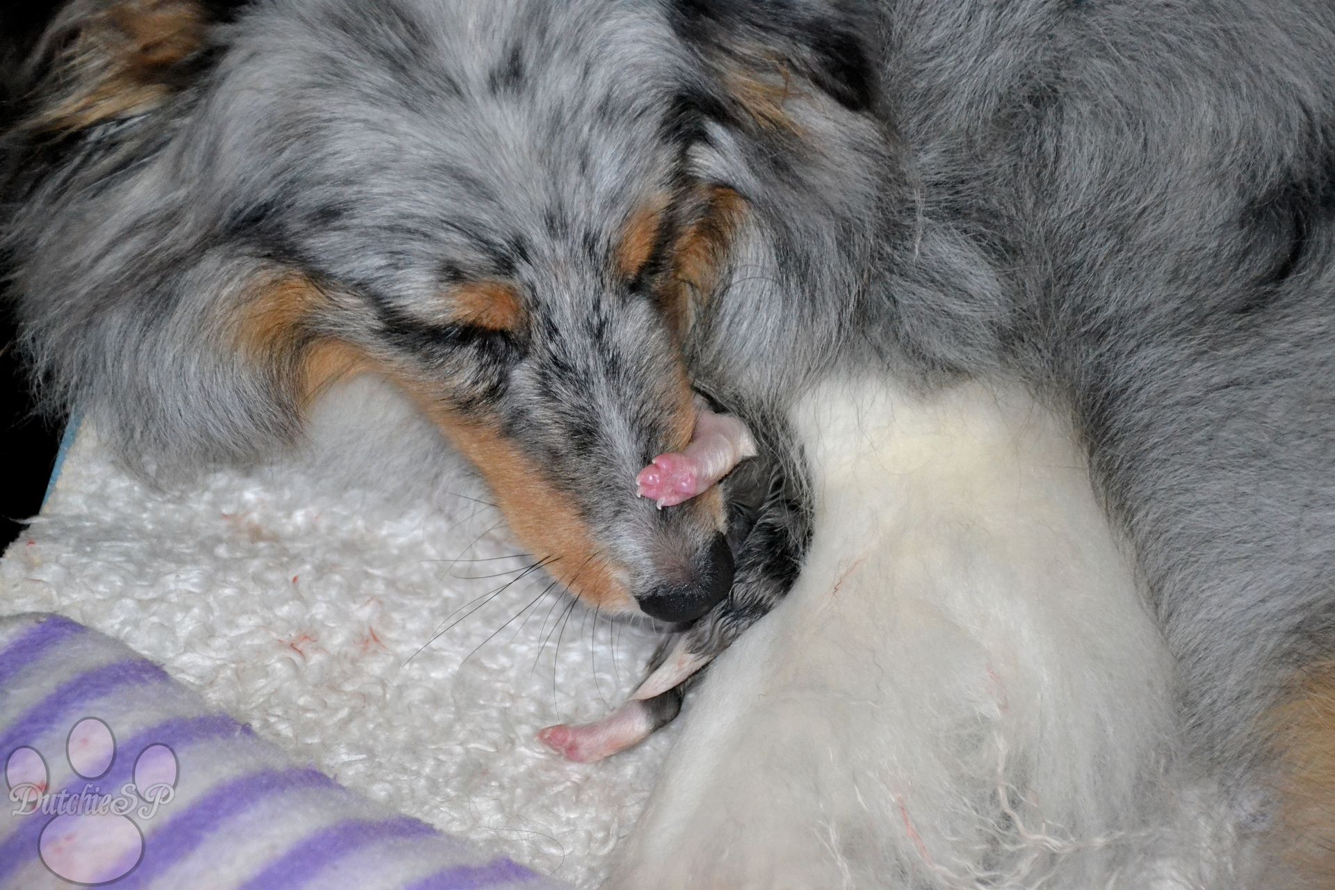 beviel ze van haar eerste pup. Deze kwam er wat blauw uit in stuitligging maar