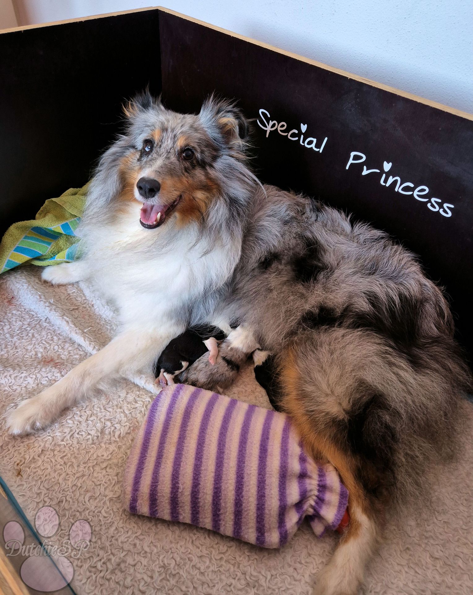 stuit en de kleinste van het stel maar alsnog een flinke meid. De pups dronken