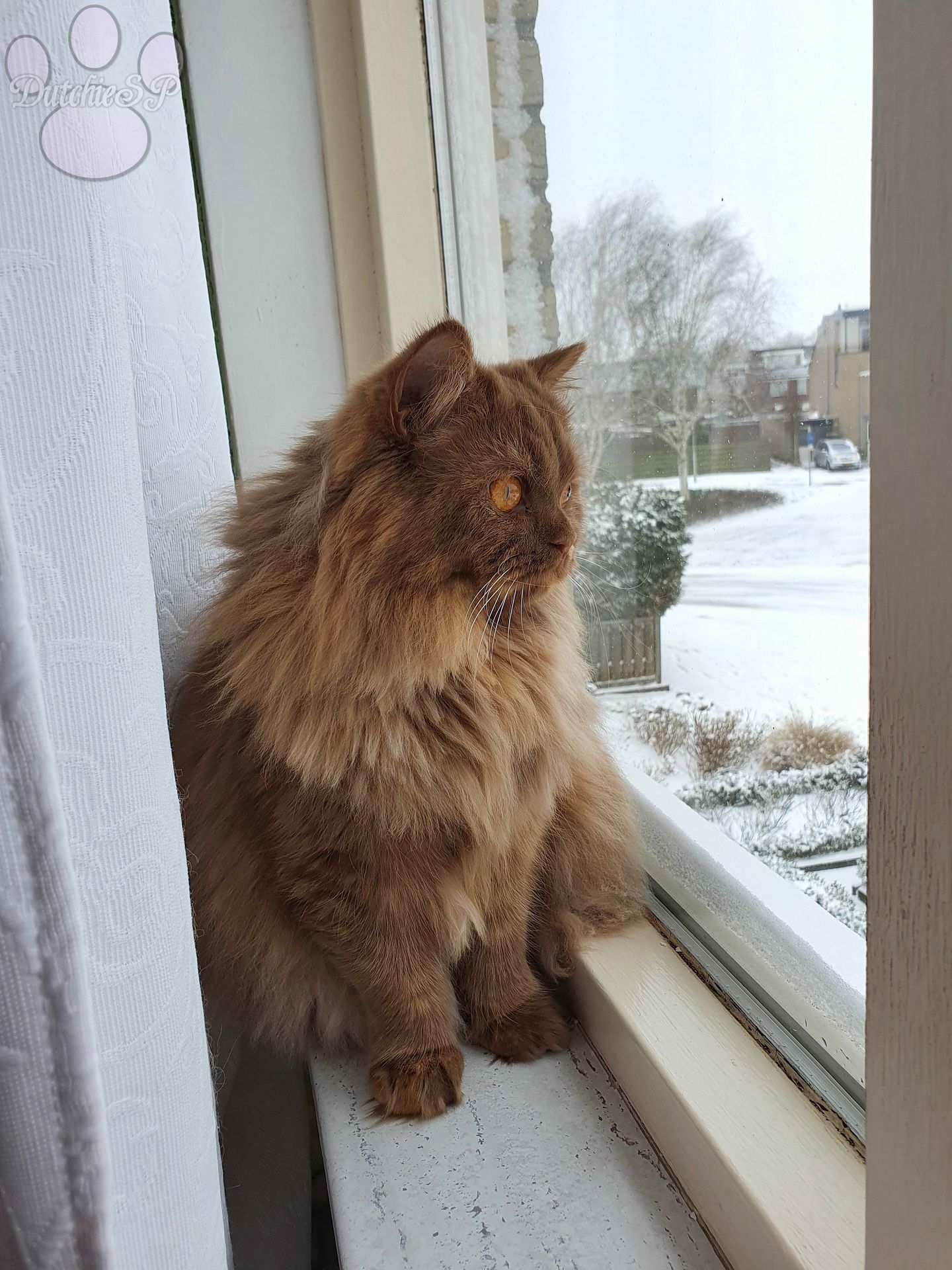 het raam houdt ze ons wanneer ze kan als ze ons ziet in de gaten. Ze is bovendien erg graag bij de honden en speelt met name met Bloom en Mizuki regelmatig heel lief en zachtjes. Meghan is vernoemd naar de Duchess of Sussex, oftewel Meghan