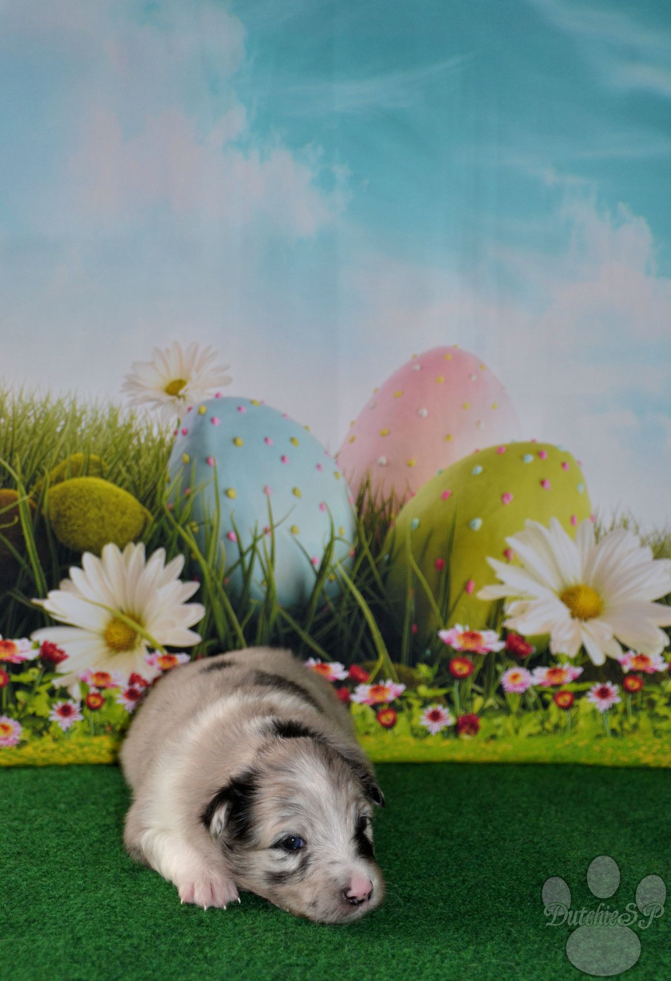 Royal Blue from Marmorea's Shelter “Bloom” Blue merle teef Geboren op 21 oktober 2021 ECVO vrij (op milde distichiasis na) Genetisch CEA & PRA vrij MDR1 +/+ (vrij) DM2 N/N (vrij) vWDIII N/N (vrij) HD-A