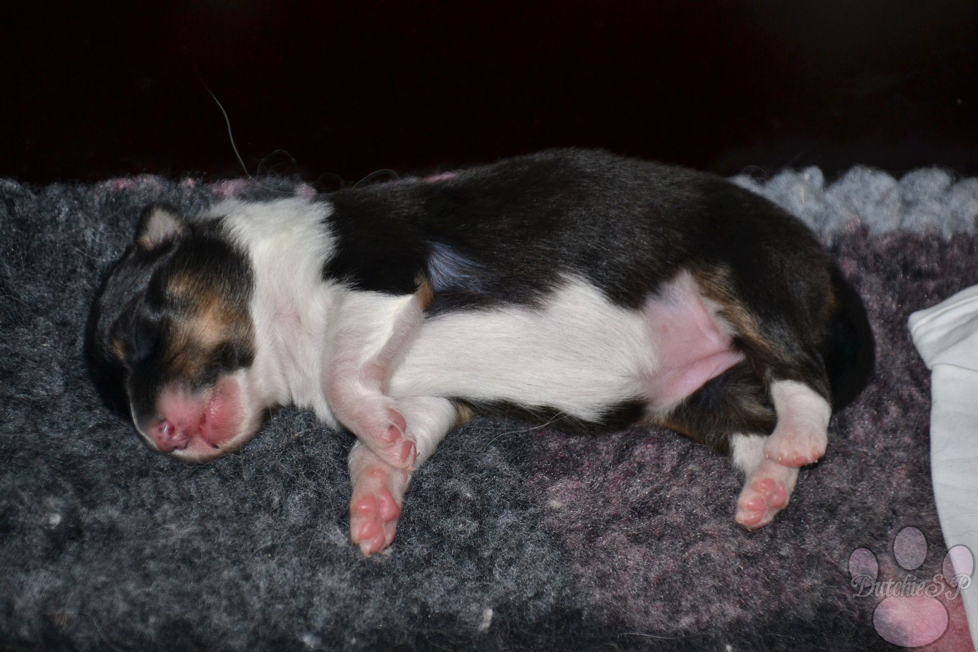 Ons één week oude driekleur dametje Jiggly