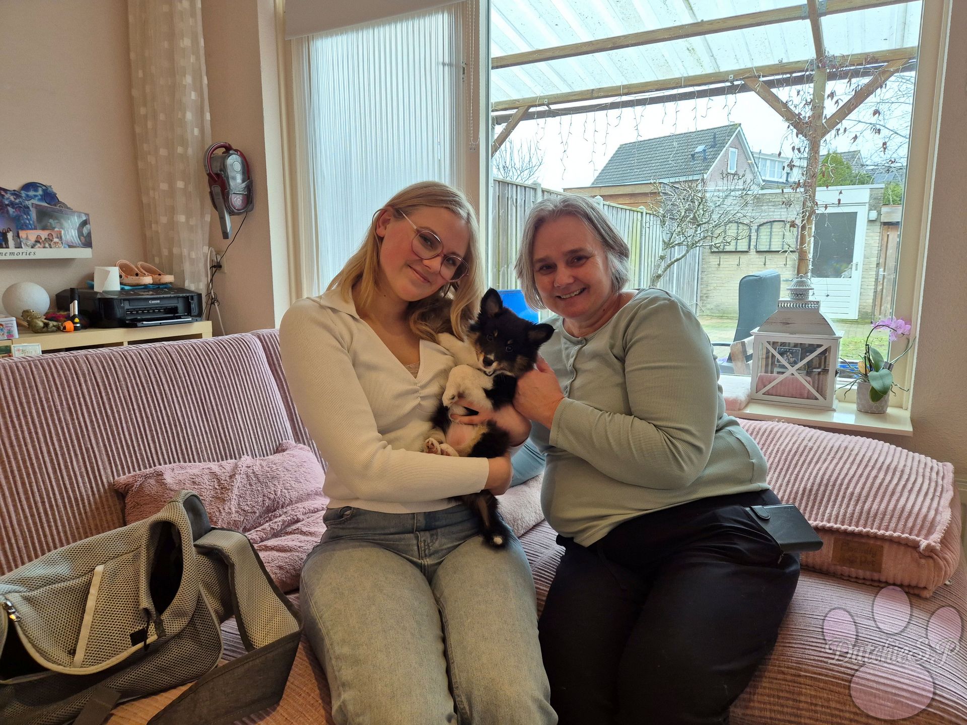 nieuwe familie is smoorverliefd en geniet van alle puppypret die Mellow met